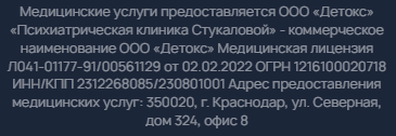 Частная клиника Стукаловой предлагает услуги профессиональных психиатров и врачей других специальностей для срочного или планового лечения от зависимости.